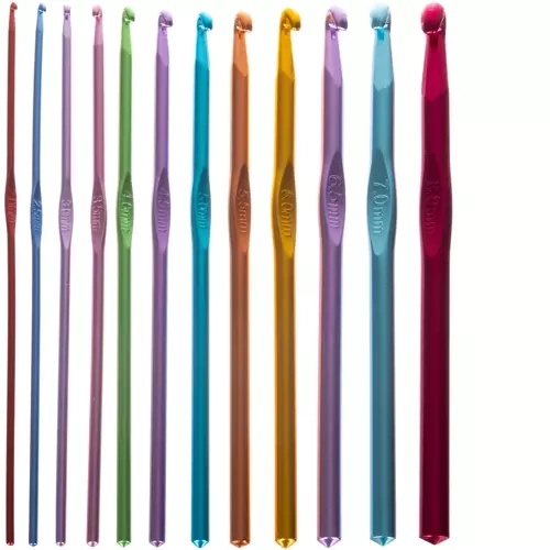 - 12 kolorowych szydełek: 2.0, 2.5, 3.0, 3.5, 4.0, 4.5, 5.0, 5.5, 6.0, 6.5, 7.0, 8.0 mm